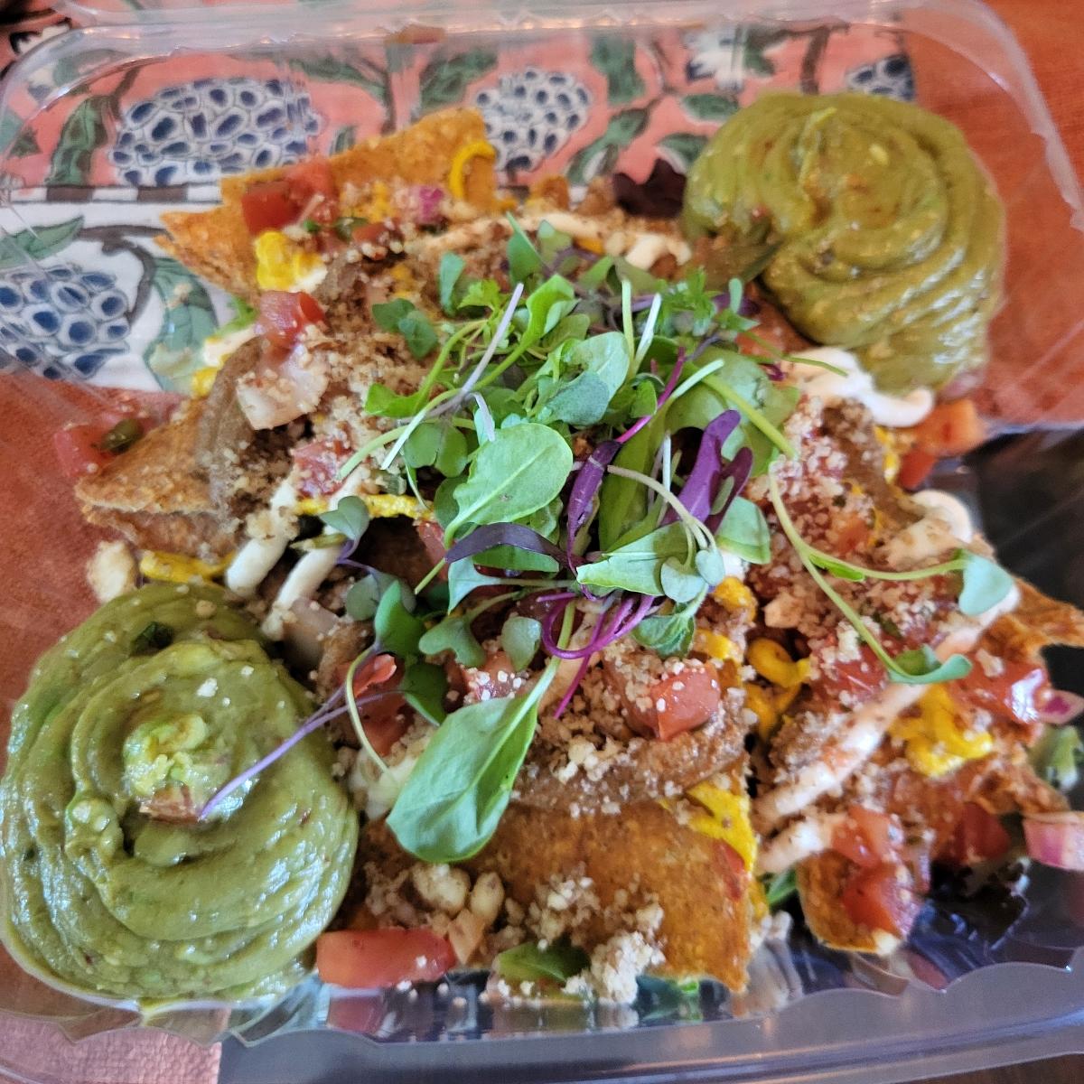 I like Cafe Manna, they are just on the spendy side for me. These raw nachos tasted good. Needed something for takeout that would travel well.