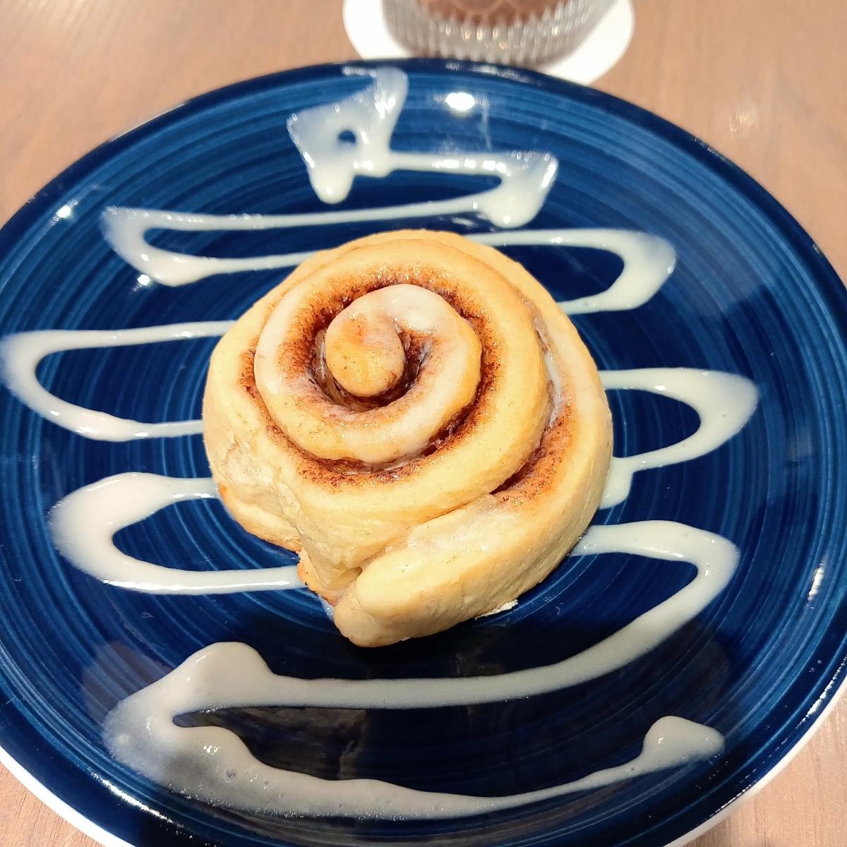 Afortunadamente, las opciones veganas están marcadas en su carta. Este rollo de canela cuesta 8 soles así que el tamaño está bien. Suelo encontrar a más de 10 soles en otros lugares y son un poco más grandes.