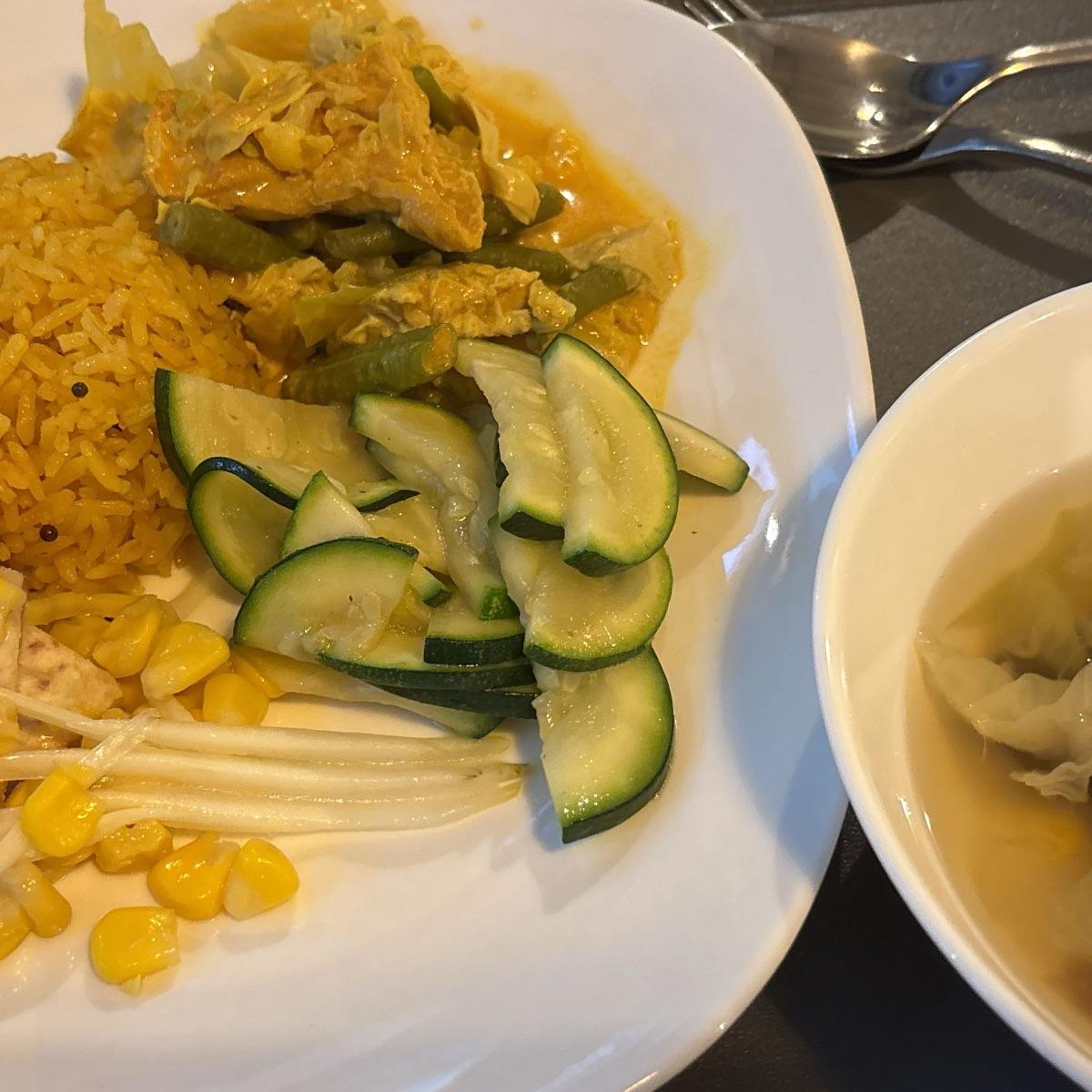 Turmeric is great in so many ways. This set meal also includes mango salad, tofu, and soup.