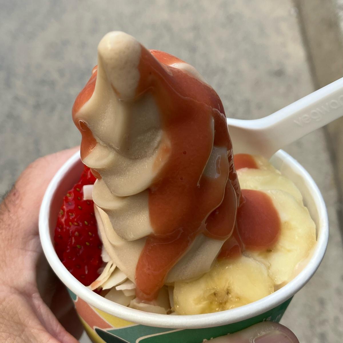 Banán at Waikiki Beach isn’t easy to find! It’s located along a beach-access path adjacent to Royal Hawaiian Center. But it’s worth the effort! This dairy-free, banana-based soft serve with no sugar added is a refreshing delight on a hot summer day. My only complaint is that some items here have honey. But the knowledgeable staff confirmed that the Strawberry Guava is always vegan. #OahuVegan #veganatthebeach