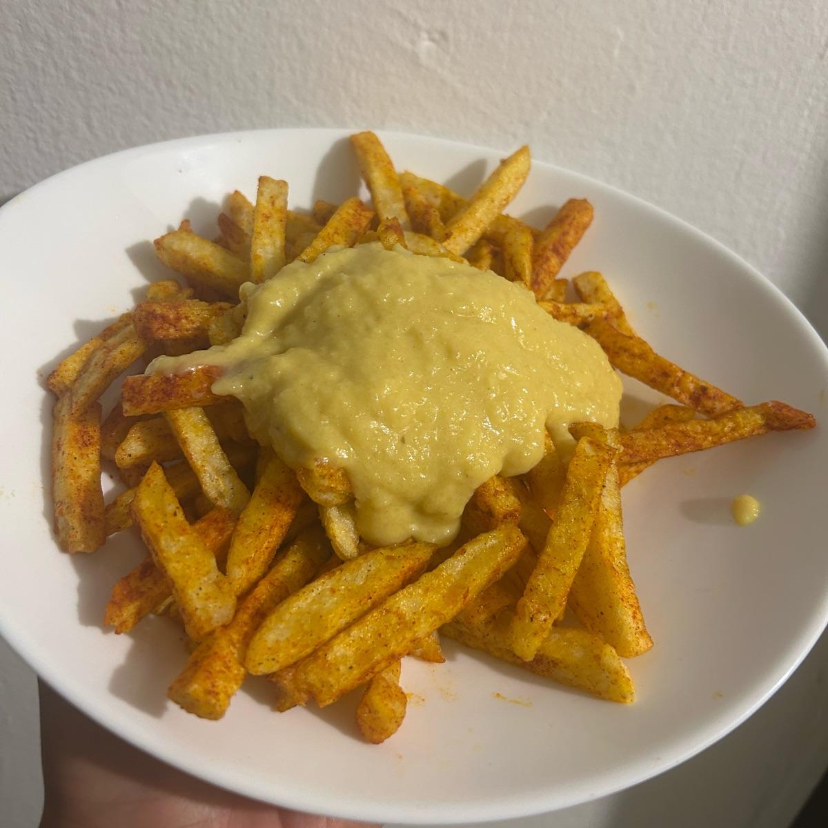 These are amazing cheese fries! They’re seasoned with paprika and topped with their amazing plant based cheese, I can tell it has nooch!