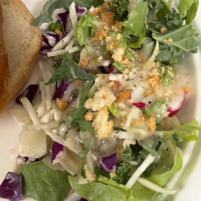 DELICIOUS 🤤… this was so good and getting a bargain made it even better … I did not think I’d like the dressing … I don’t remember having it in the past .. but I may have alone the way … #dillpickle #salad #radish #cauliflower #cabbage #croutons crumbles #lettuce #kale … great combo .. thanks #tabithabrown and #target