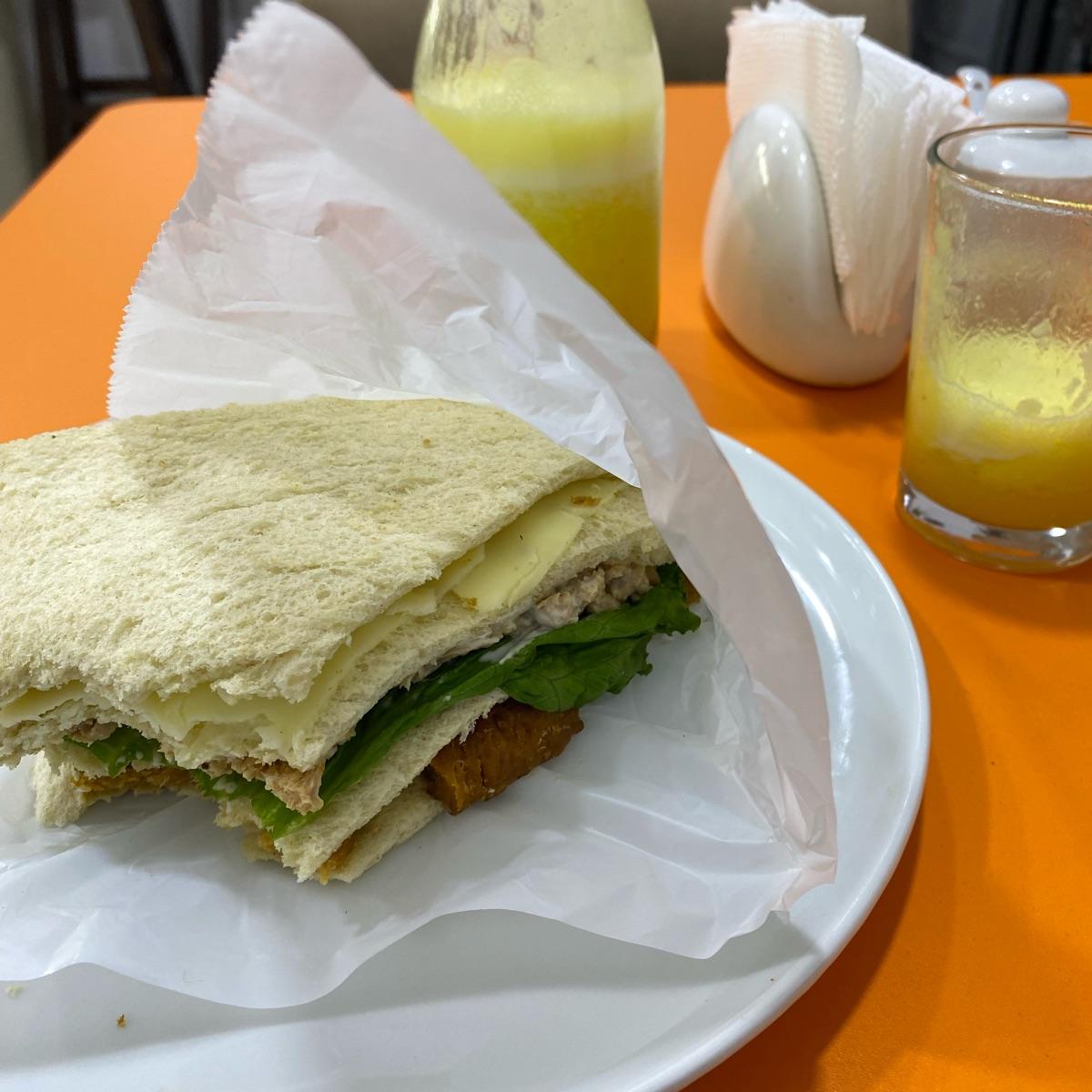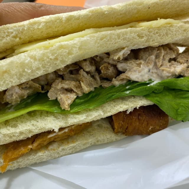 Iáminas, carne de soya tipo "pollo" con veganesa y seitán sabor a "pavo". Me gustó pero estaba un poco seco, me hubiese gustado que unten el pan con alguna salsa como mayonesa o paltanesa. El lugar es agradable y encuentras muchas opciones a muy buenos precios. #veganisnotscary #vegan #vegansandwich