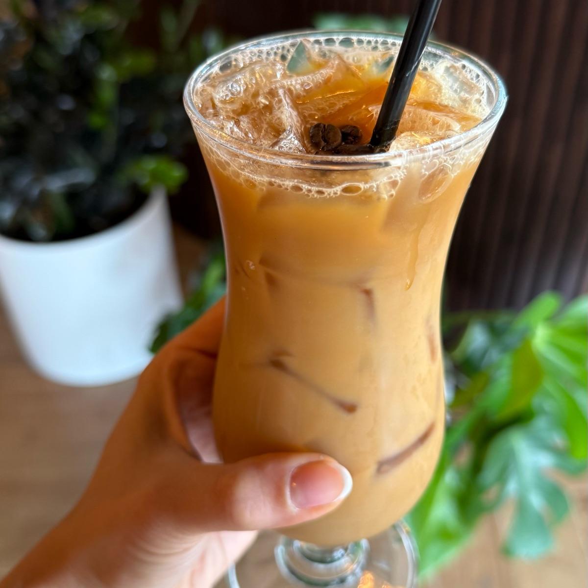 Delightful and yummy latte! Smooth and beautiful! Perfect ambience for a date! :) #latte #oatmilk #durant #durantok #oklahoma #vegantravel