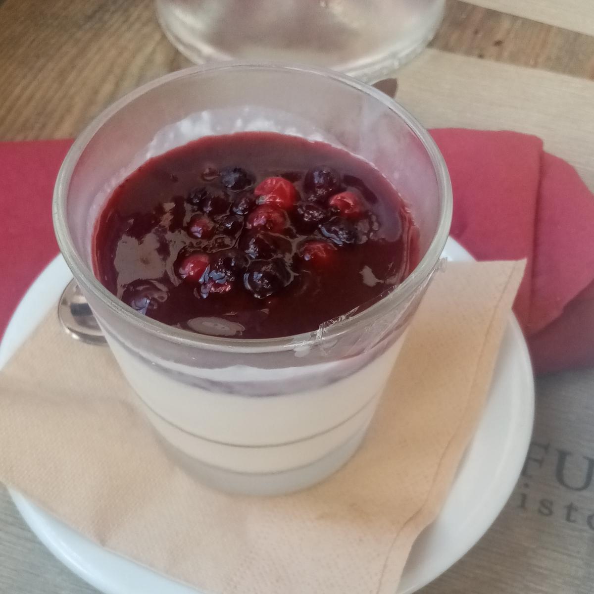 ho apprezzato in particolare che il topping era fatto con frutta vera, non il solito sciroppo industriale iperdolce, quindi era appena asprino e ci stava bene con la pannacotta che fondamentale era tipo latte di cocco condensato, grassissima! 😅😋 #sweetdreamsaremadeofgrease