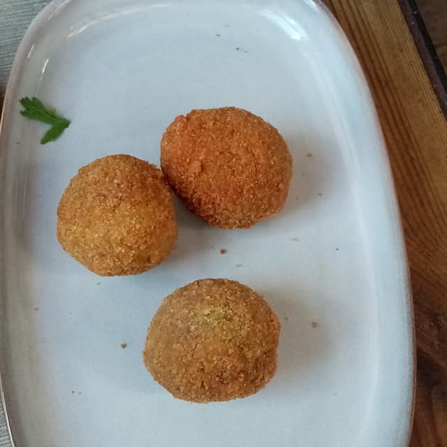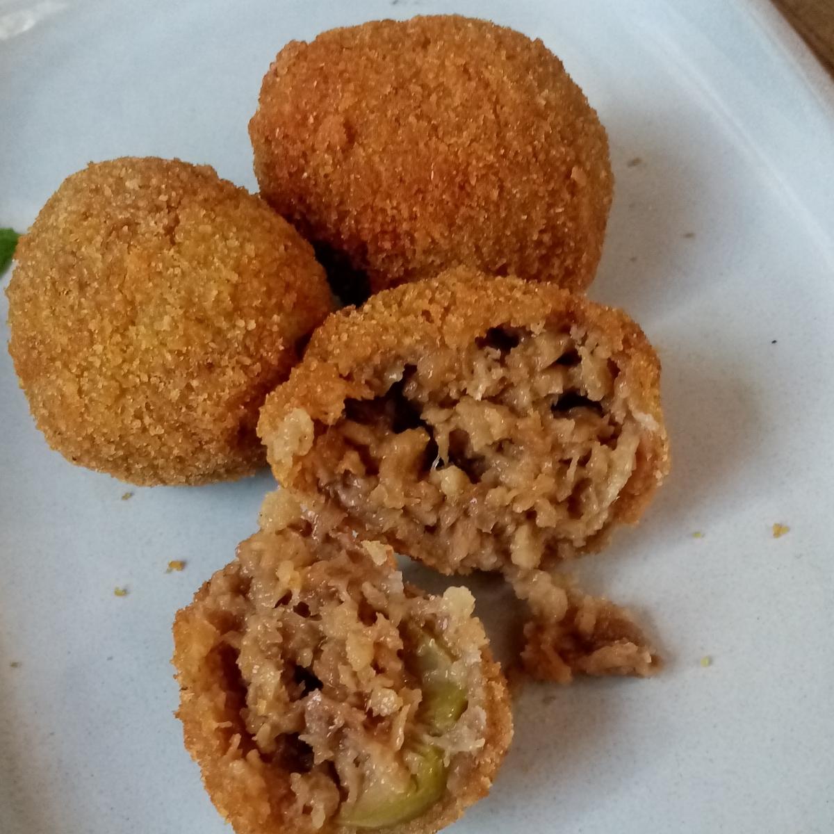 croccanti fuori in panatura fritta asciutta 🔝 dentro olive verdi tritate e non so bene cosa altro, però bbboneeee!!!