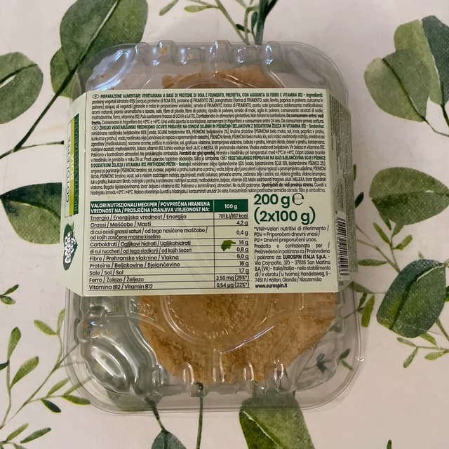 The soy schnitzel is a plant-based meat alternative that is made from 100% vegetable ingredients. It is a great source of protein and is also fortified with iron and B12 to ensure that it is nutritious. The texture of the schnitzel is crispy on the outside and tender on the inside, making it a satisfying and savory meal. Whether you are looking for a quick snack or a tasty addition to your dinner plate, the soy schnitzel is a delicious and healthy option.