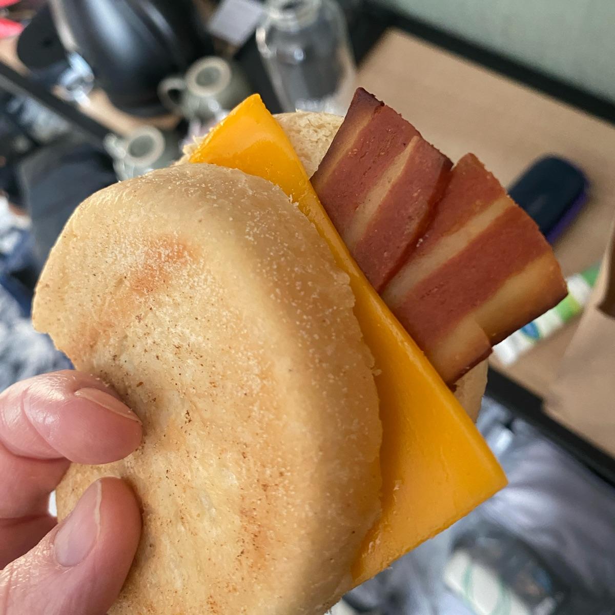 Amazing soft and tasty . They must infuse the bacon with smoke . Good morning fellow vegan babies !