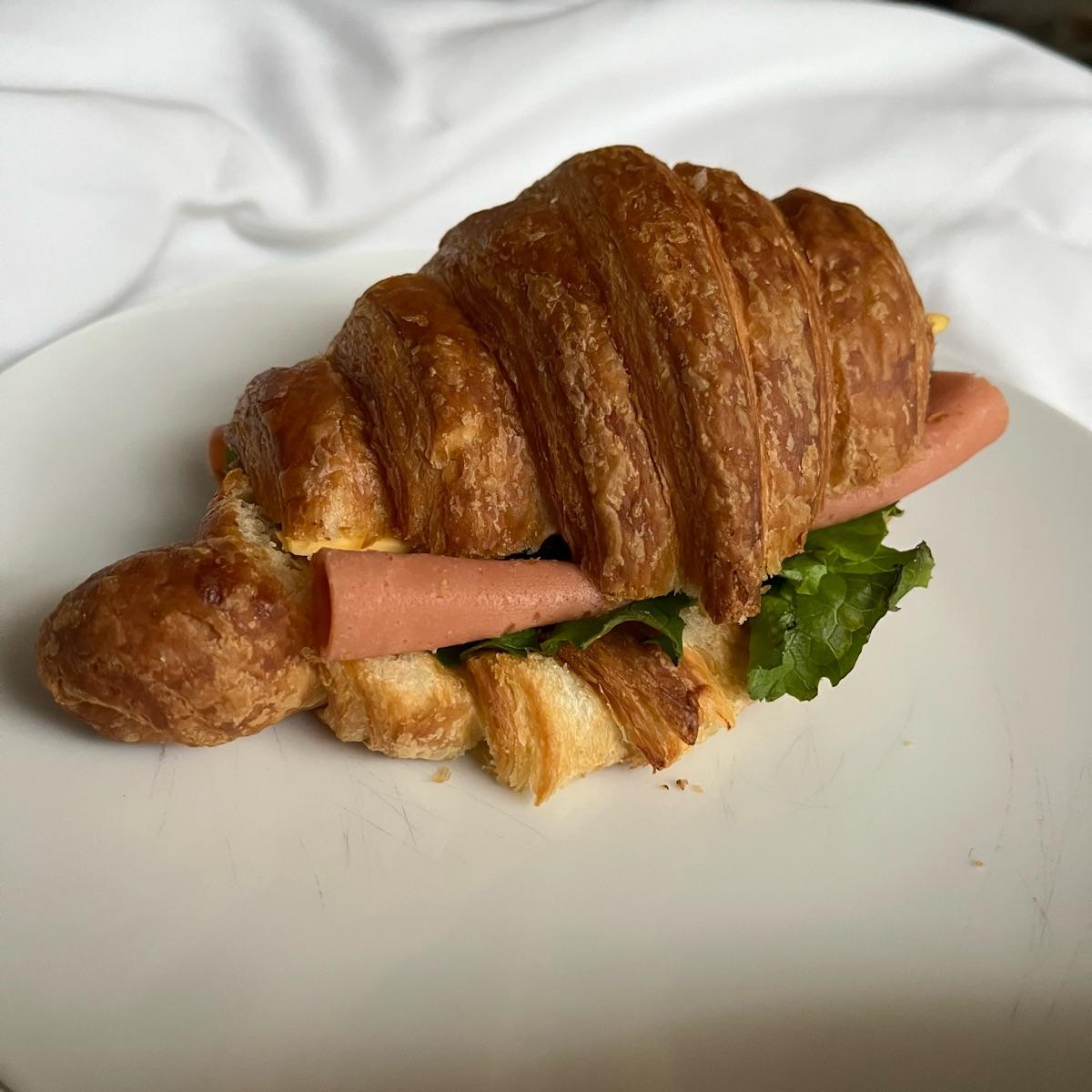 A-M-A-Z-I-N-G #vegancroissant filled with #plantbased ham, #cheese , #mayo , #cucumber and #apple slices 🥐 we ordered it to our hotel and heated it up in the microwave and it was bomb💣 absolutely recommended!!