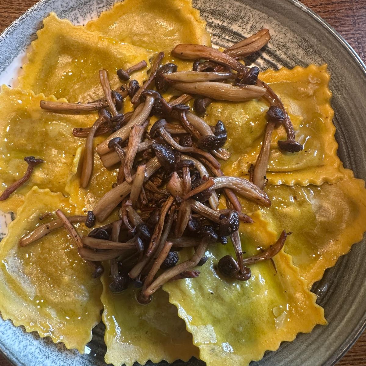 We came to this pub starving and hoping for a roast! Sadly the #veganroast was sold out for the day and so I went for this mushroom #ravioli. It was pretty tasty but the portion was so small and I was left feeling quite hangry. These views from the pub were superb, the pub itself had quite a Chainy feel so don’t expect traditional country pub.