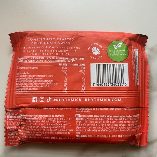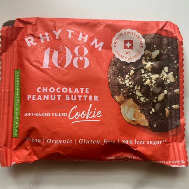 A rich chocolate cookie filled with gooey peanut butter topped with sprinkles of peanuts and chocolate chips. Very moist and soft so it’s a bit crumbly but oh so delicious and very more-ish. The cookie is also gluten free and organic. Best cookie I’ve tasted.