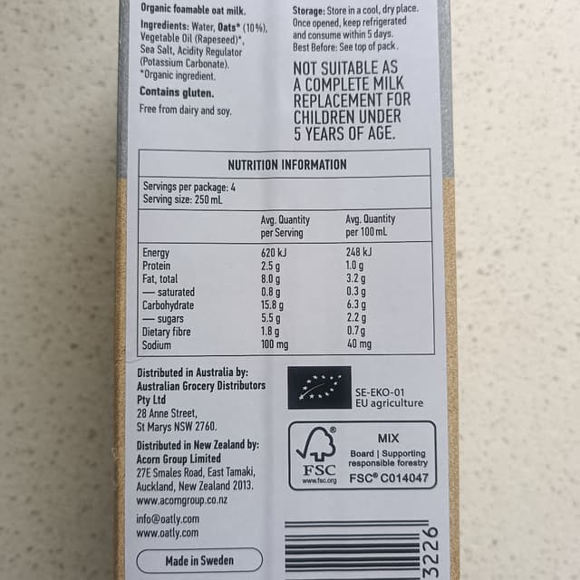 Tastes sweet and oaty and is capable of some frothing (though I'm terrible at frothing for coffees LOL). Specifically labelled organic which covers the oats and rapeseed oil. A bit pricier but it is Oatly and #organic. #oatmilk #mylk
