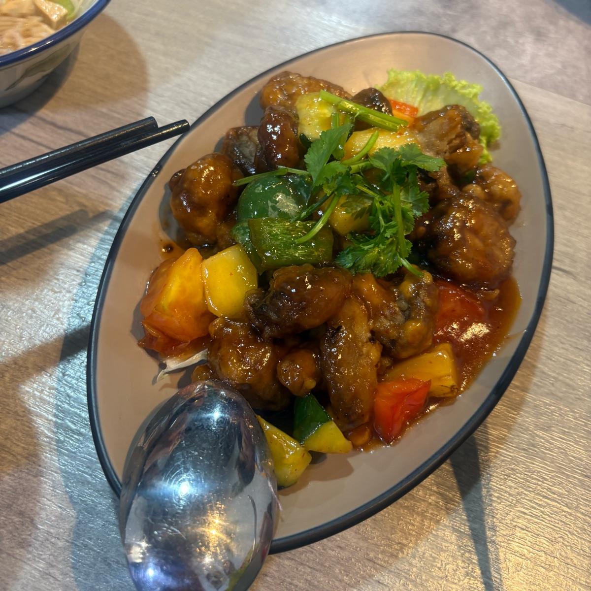 Top dish. Veggies and crispy mushrooms coated in a sweet &sour sauce. Superb on its own or as a side to whatever main you’re enjoying. a great dish for sharing. #sweetandsour #mushroom
