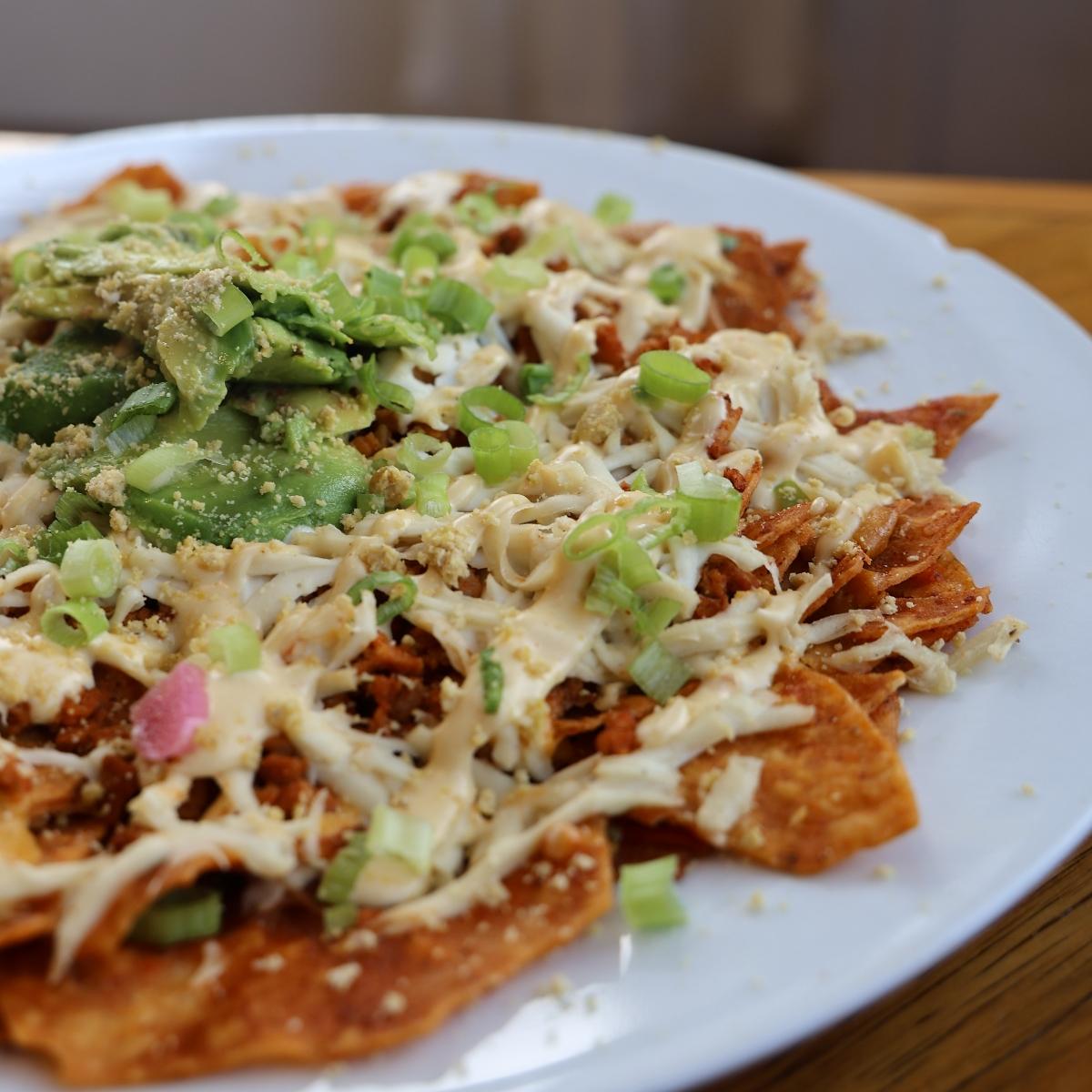 The last dish we split at @jacobnewstar 's Bday dinner were these Chilaquiles. This plate was filled with tortilla chips, salsa roja, topped with cashew cheeze, queso, birria “beef,” housemade remoulade, fresh #avocado, scallions, and parmesan. These were so good and I really loved the different flavors. It did have a kick if spice, but nothing too spicy. The chips did get a little soggy, but they still tasted delicious. I love $2's housemade cashew. It has the best texture for #vegan cheese!