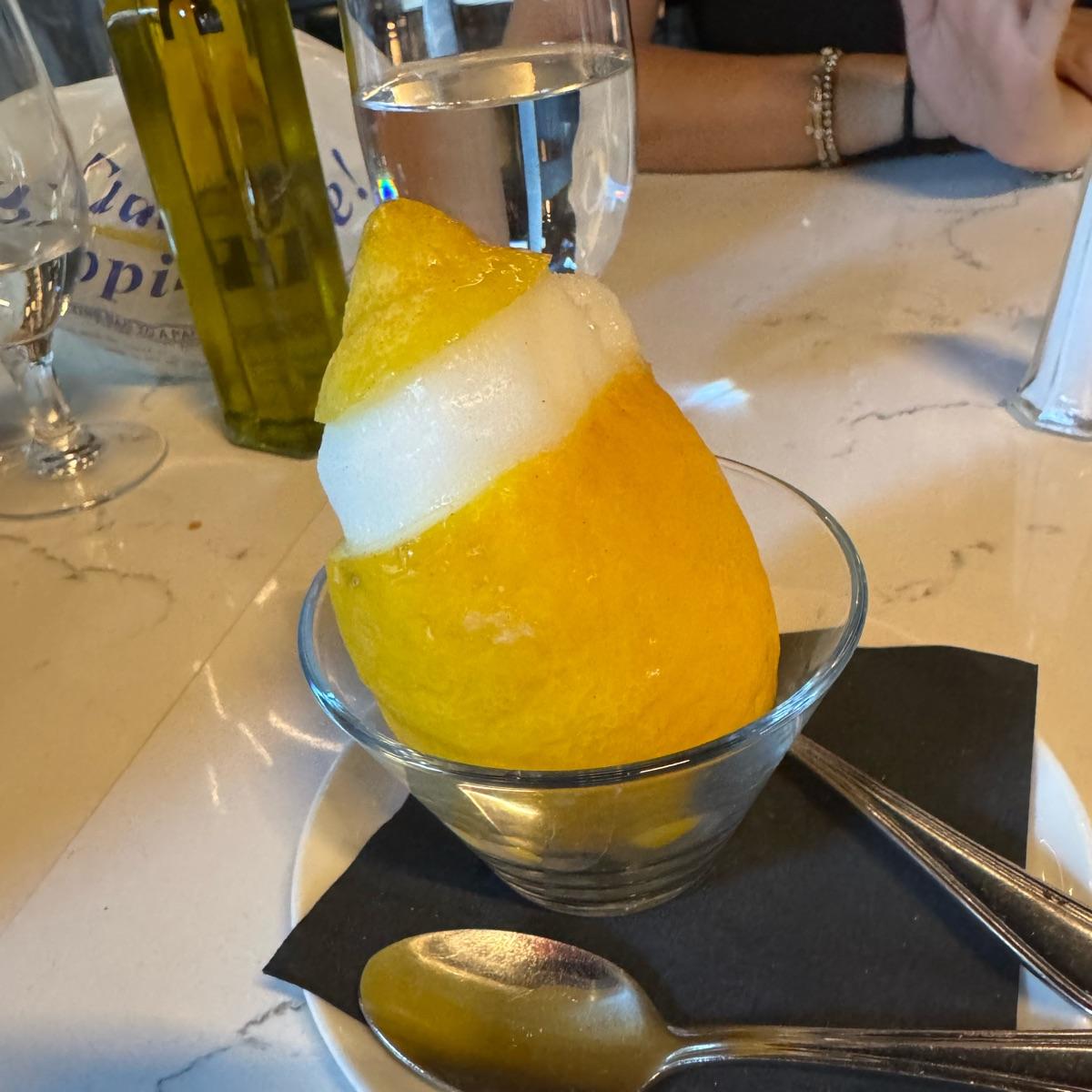 While the dessert was not very original, at least it tasted good and was refreshing in such a hot evening. The had an orange and coconut version of this as well. I was debating between the orange and lemon 🍋.. but I found the lemon just the right sweetness and perfect sized dessert 🍨