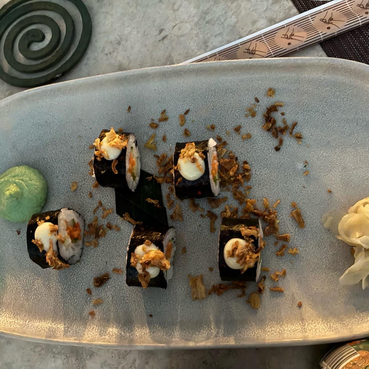This was at the Asiana restaurant in the resort. Everything was super good, with a proper vegan menu. These were vegetables' roll with Japanese mayo, nori, and soy sauce.