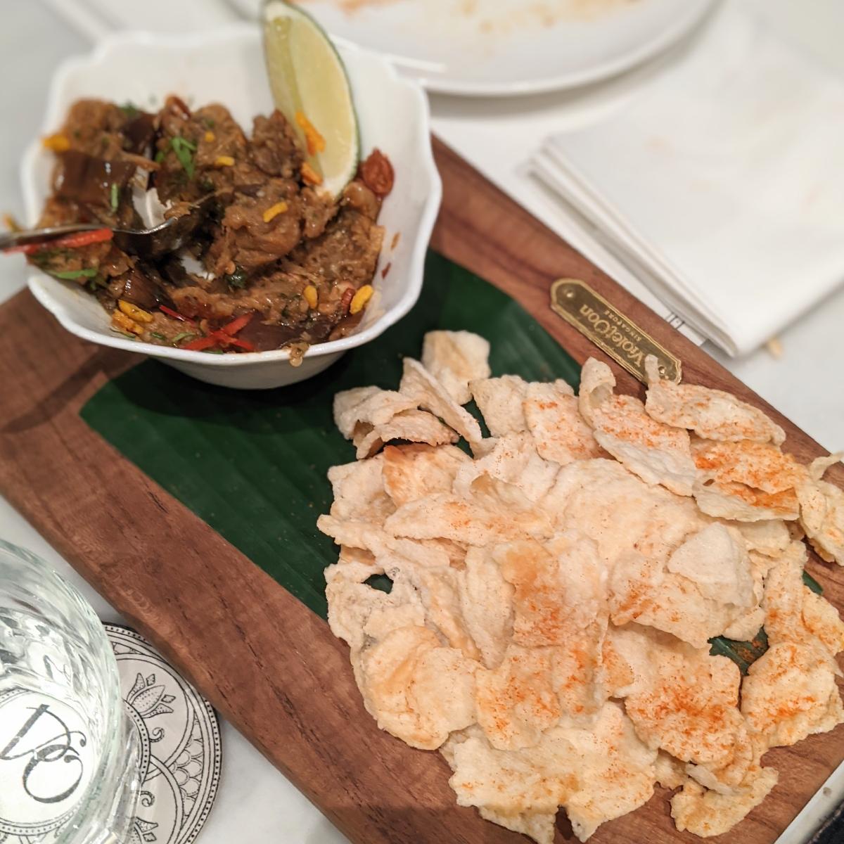 Visually stunning starter plated on banana leaf - just look at that vibrant splash of chili powder on belinjo crackers! A tad reminiscent of baba ganoush, but make it Southeast Asian, is the dip: textured mush of aubergine with fresh coriander (would have loved more #evilweed) and zesty squeezy lime. You can imagine how good it tasted. Thanks to @vikas and fellow @abillion members for such a splendid time out last Thursday... wait, that's literally #throwbackthursday. 😏
