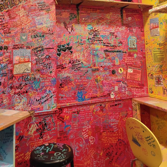 Es un local muy acogedor y peculiar con un montón de mensajes por todos lados. Dejamos un mensaje en nuestra mesa 🥰.