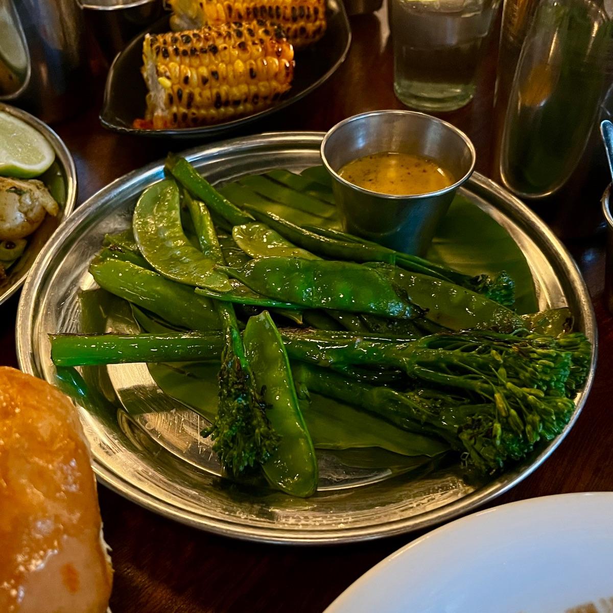 I 💚 greens and of all the dishes I had at Dishoom this was the one for me. Simple and effective grilled #tenderstembroccoli & #mangetout .