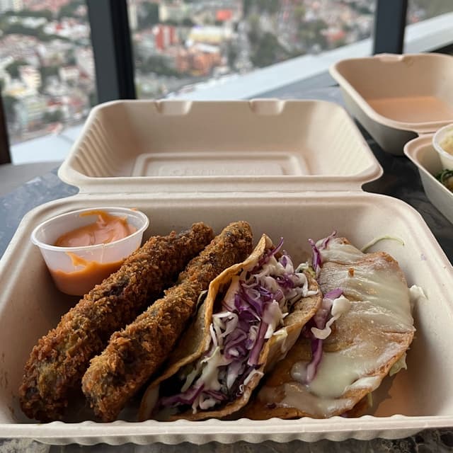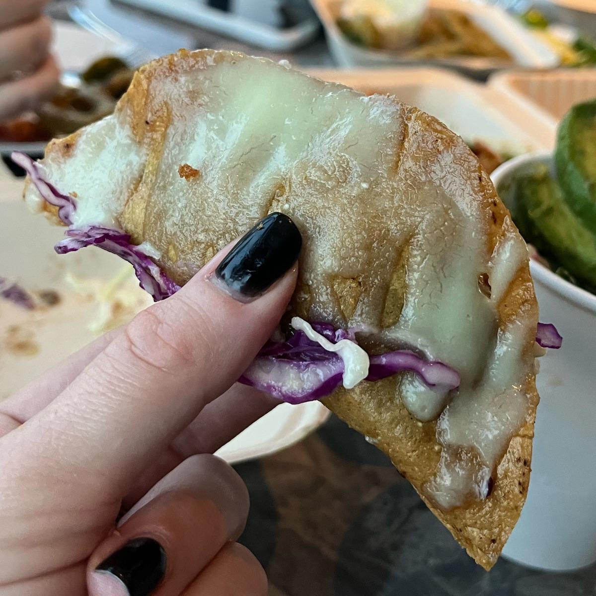 Crispy #corn tortillas stuffed with sea-flavoured #mushrooms with a cabbage mix, #avocado, and habanero vegan sauce. They honestly didn’t taste too fishy for me, but I loved the crunchy outside #mexicovegano 🇲🇽🌮
