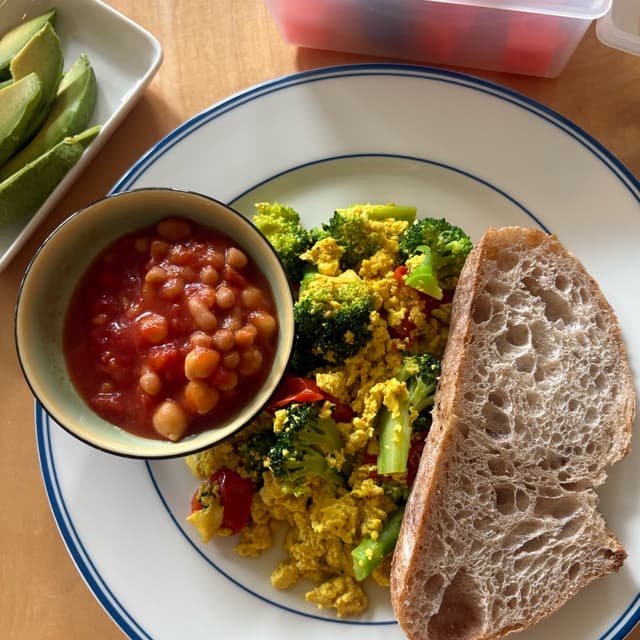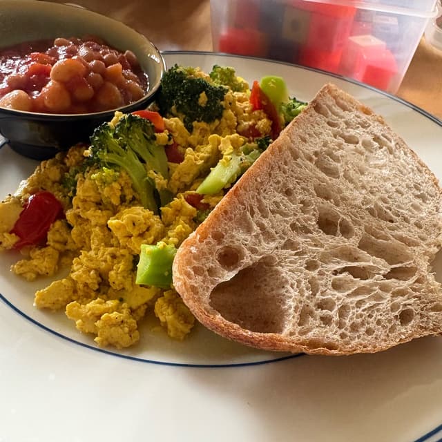 Straightforward goodness, and everything that we love: tofu, broccoli and bread. The tofu was well-cooked and seasoned well. Such a treat. You can also request add-ons: we chose sliced avos and their house-cooked beans, which were amazing and certainly recommended. #scrambledtofu #tofu #broccoli #sourdough #alldaybreakfast #brunch #veganbrunch