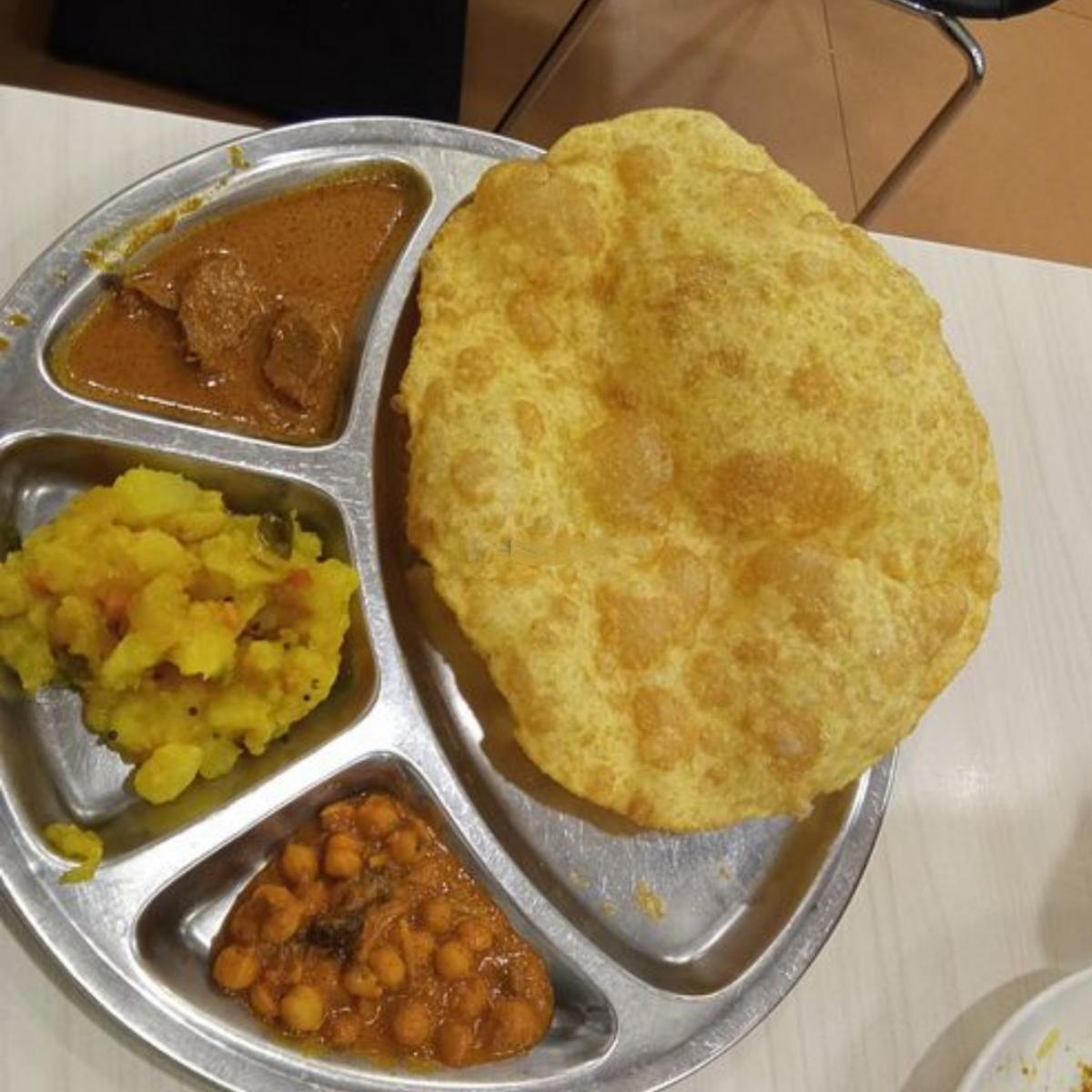 This comes with One bhatura, mutton curry, potatoes, and masala chick peas. Let them know you're vegan. The staff here is Very vegan friendly and good food. $8.80 for this satiating dish