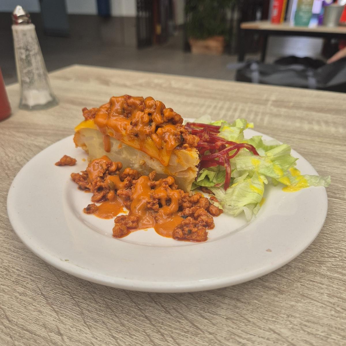 Buenísima tapa de #tortilla coronada con queso y proteína vegetal. #sevilla #tapas