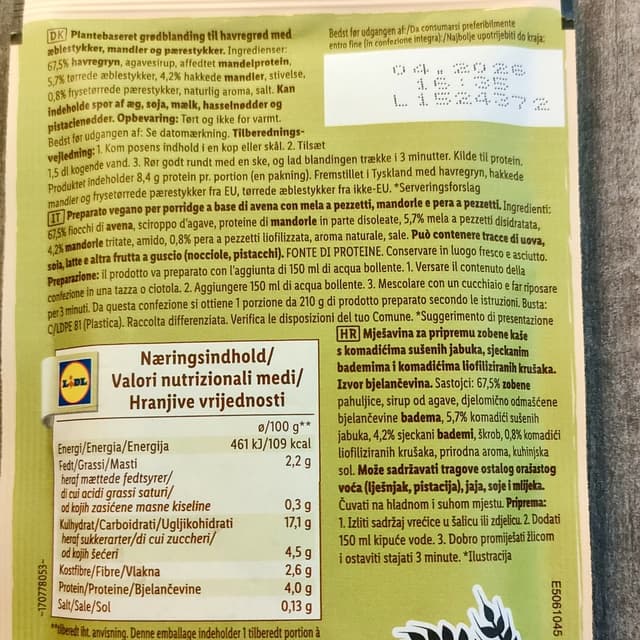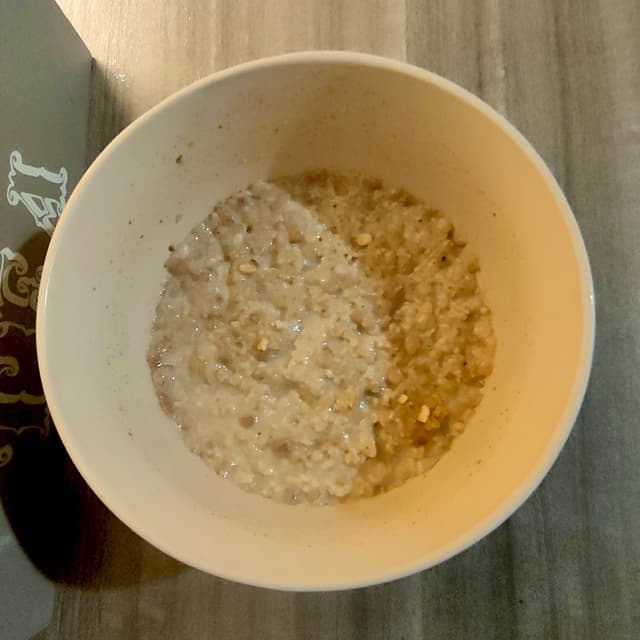 Porridge con mandorle e mele,gusto gradevole, consistenza beh,la solita del porridge che non amo. Magari con l'aggiunta di gocce di cioccolato non sarebbe male.