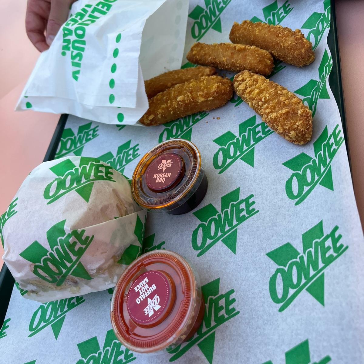 🍗The brother-in-law chose these #veganchicken tenders at this🌱 #veganjunkfood place. It was cool how you got to choose two sauces to go with them but there were so many to choose from. It was difficult. He loves it #spicy 🌶️so got the #buffalo #hotsauce which was blazing and like African hot sauce he said. 🥵I suggested the🇰🇷 #korean #bbq as the second as he also loves Korean food. This was sweeter and probably less to his liking than mine. I love this kind of place for #comfortfood. The BIL nearly buckled and bought a burger here after watching us drool over ours. There are some outside tables with cute views on the busy streets and all the people walking by. Great place where I’d be a regular if I was local to #veganbrighton. £8.95 #veganrestaurant #saveveganrestaurants