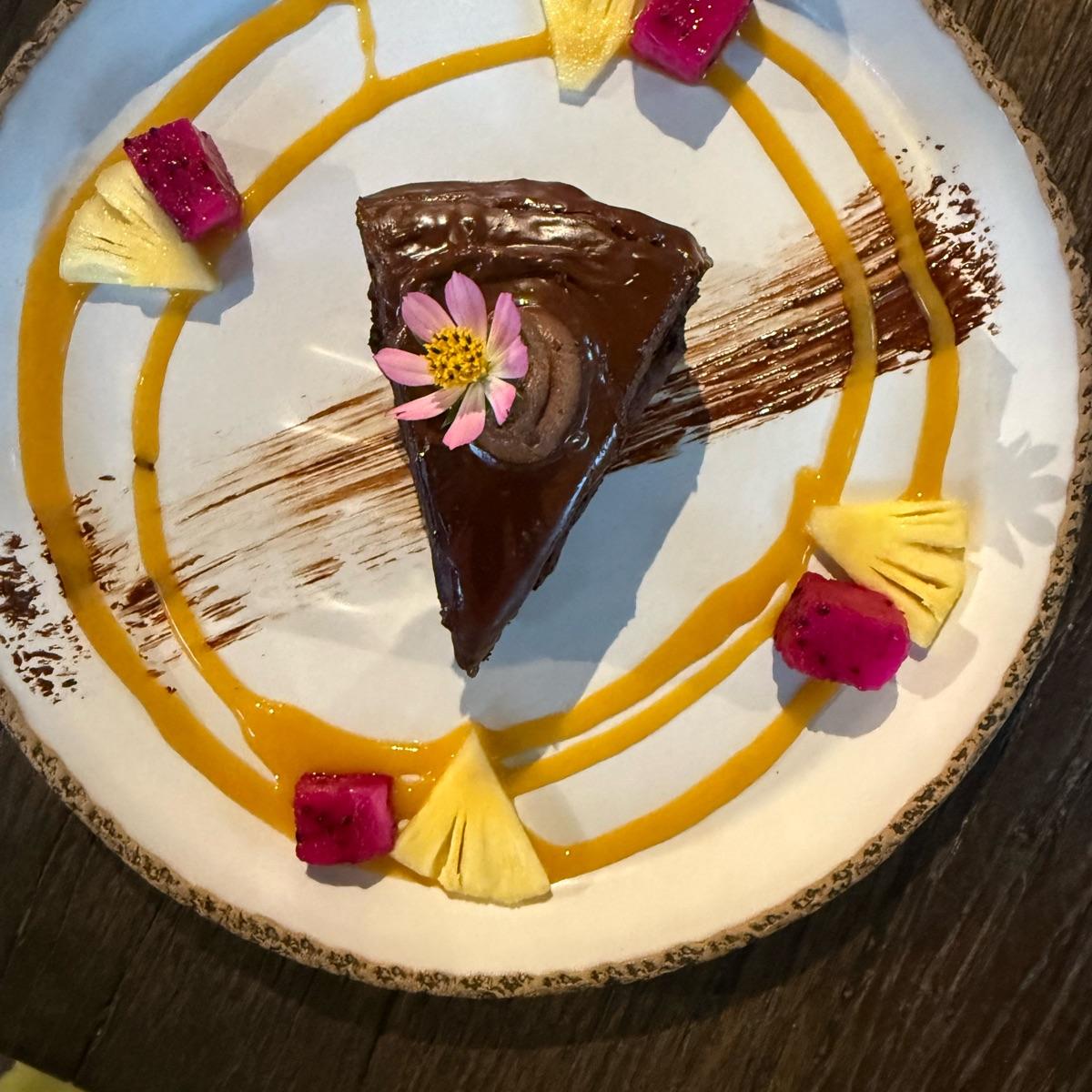 Yummy, rich and decadent choc cake. I could taste a hint of banana in there. The bottom part is a bit dry but the fudge saves it.