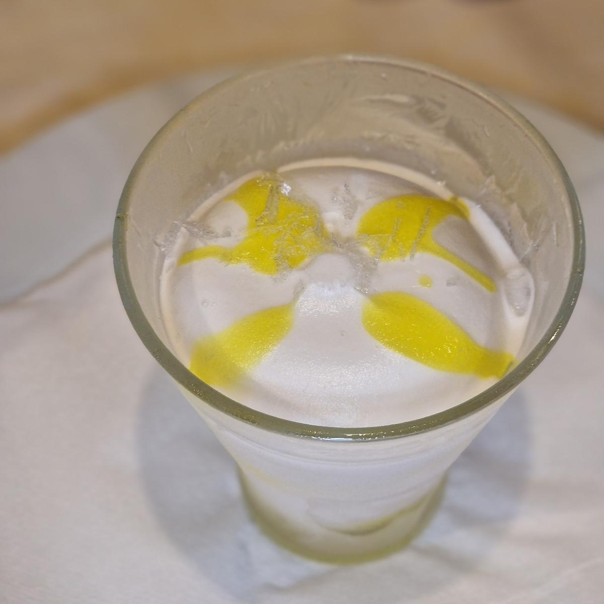 Sorbetto al limoncello proposto inaspettatamente tra i dolci. Senza albume e molto buono.
