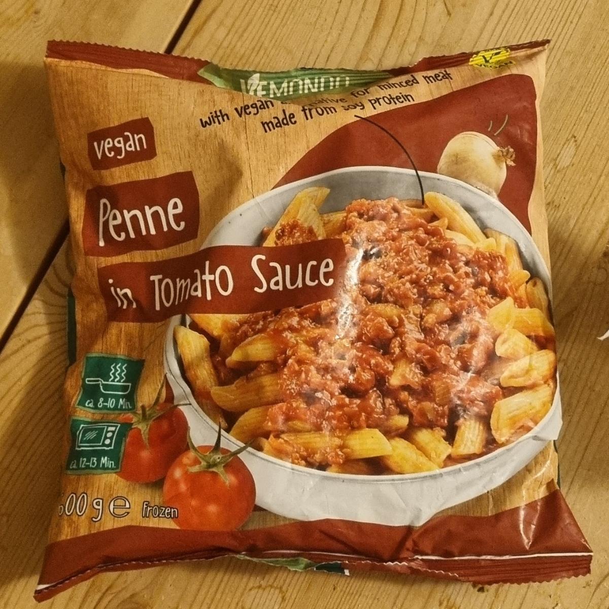 This is a ready meal with penne and a tomato sauce with vegan minced meat.