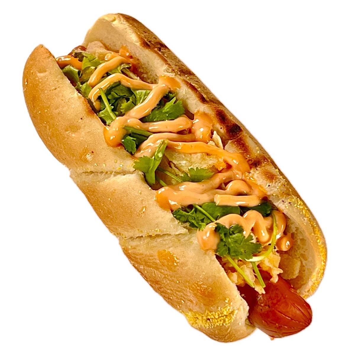 This had pineapple slaw, potato chips, cilantro, and pink sauce. There is a vegan option for all the hot dogs because the buns, sauces, and toppings are all vegan. Each of them has a flavorful sauce, a satisfying crunch, something pickled, and something fresh. The bold and imaginative combinations of ingredients were delicious.