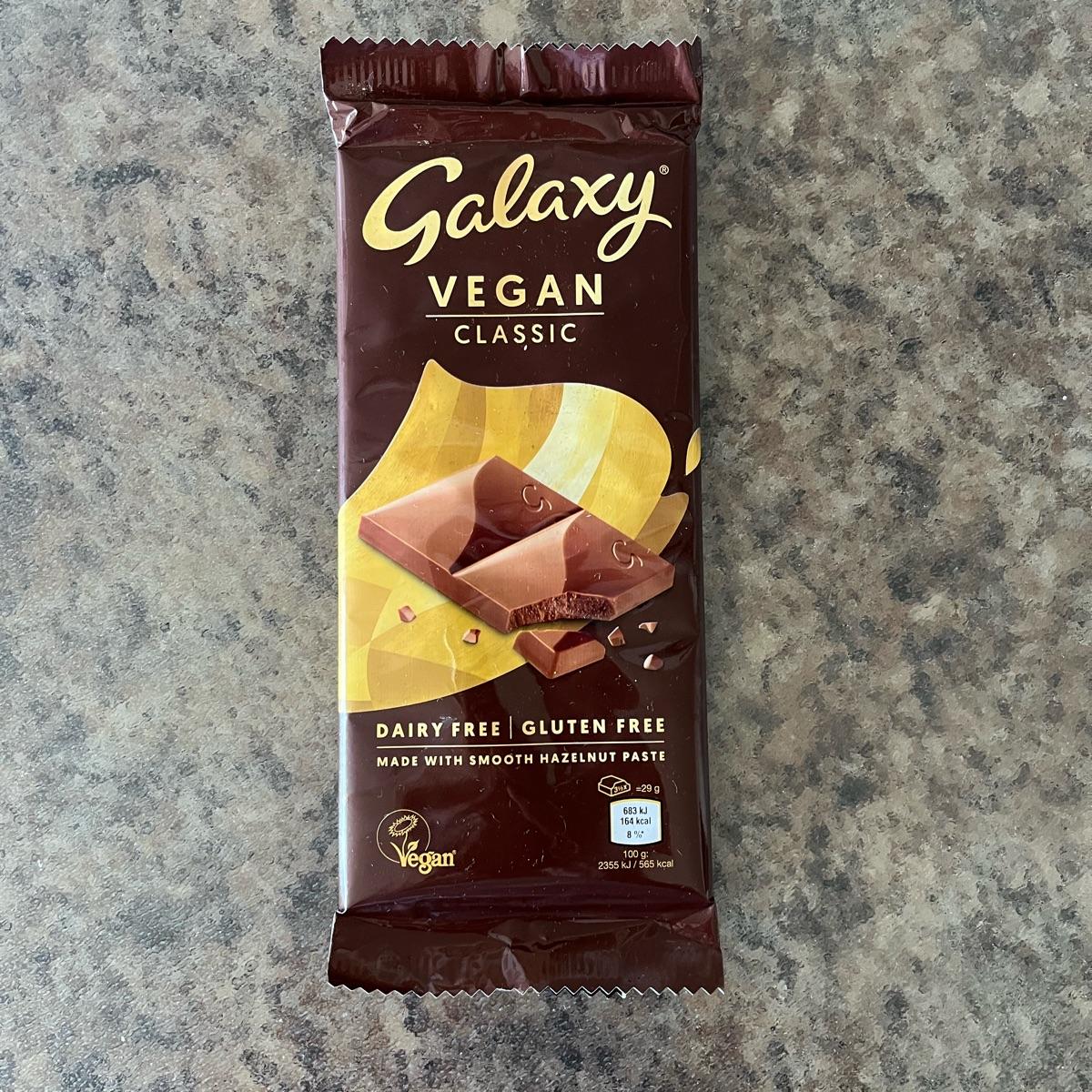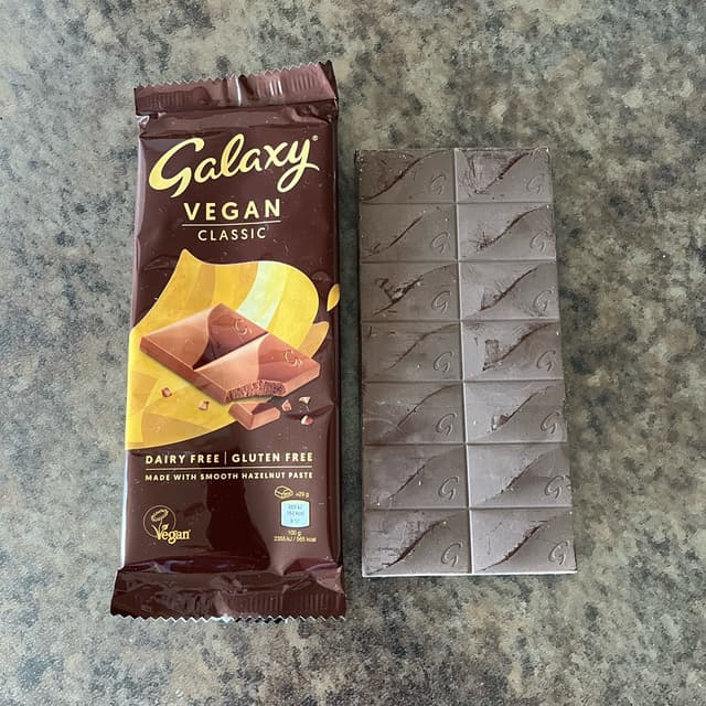 I absolutely loved the taste of this Galaxy bar. The taste and texture of this wonderful dairy-free chocolate is very evident in every bite. The chocolate bar is made smooth with hazelnut paste. The lack of dairy is not noticeable. In other words, if you didn’t know this chocolate bar was vegan, the taste wouldn’t give it away.