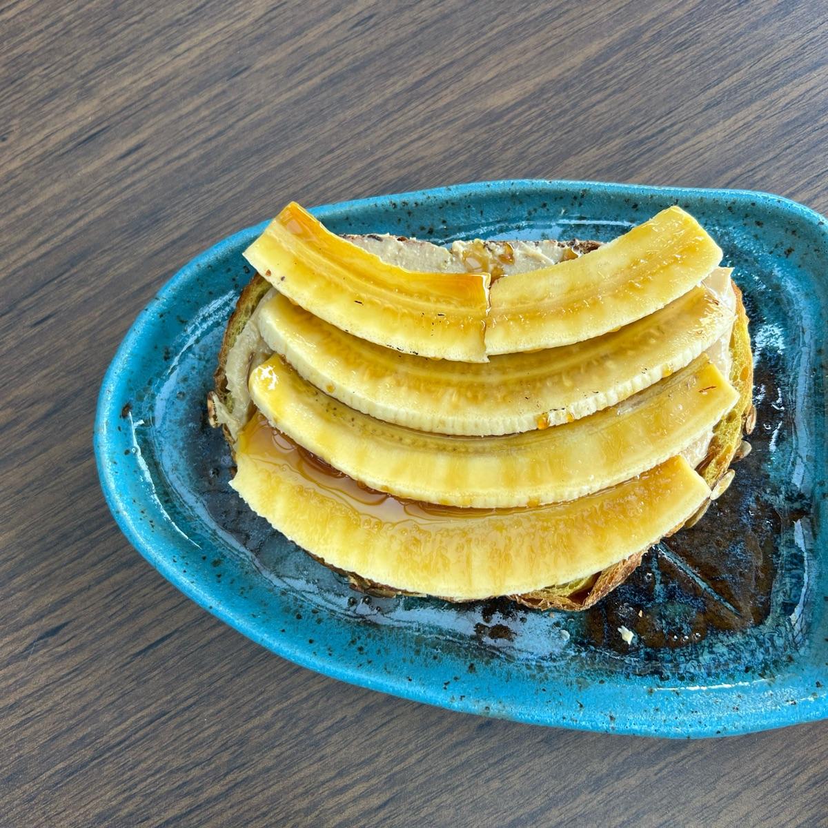 Pão com pasta de amendoim, banana e melado. Bem docinho, uma combinação perfeita.
