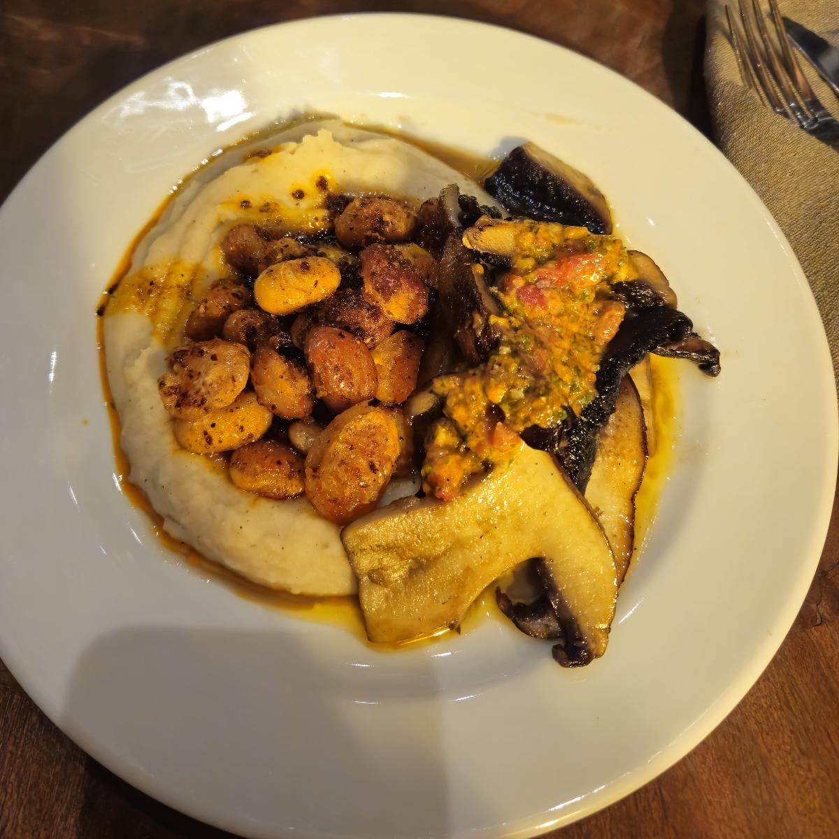 Me gustó muchísimo. El puré de alubia estaba increíble, las verduras estaban bien asadas y los portobelos riquisimo. Sólo me pareció poco abundante. Salió aproximadamente $22.000 en septiembre 2025. Hermoso el lugar, con 4 o 5 opciones veganas de comida y 2 de postre