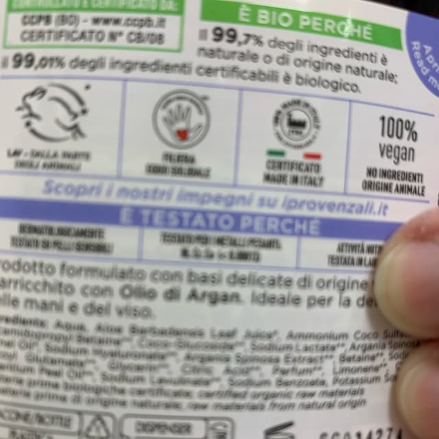 Credo abbia una nuova ci de io e più accattivante perché trasparente da cui si può vedere il bellissimo colore del sapone all’organo. Profumo molto buono e delicato sulle mani. Non testato su animali e non contiene ingredienti testati. Garantito Lav.