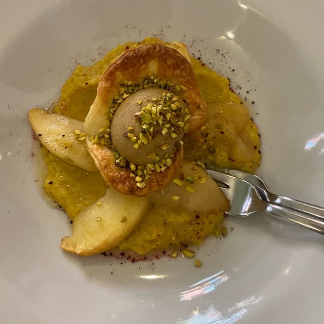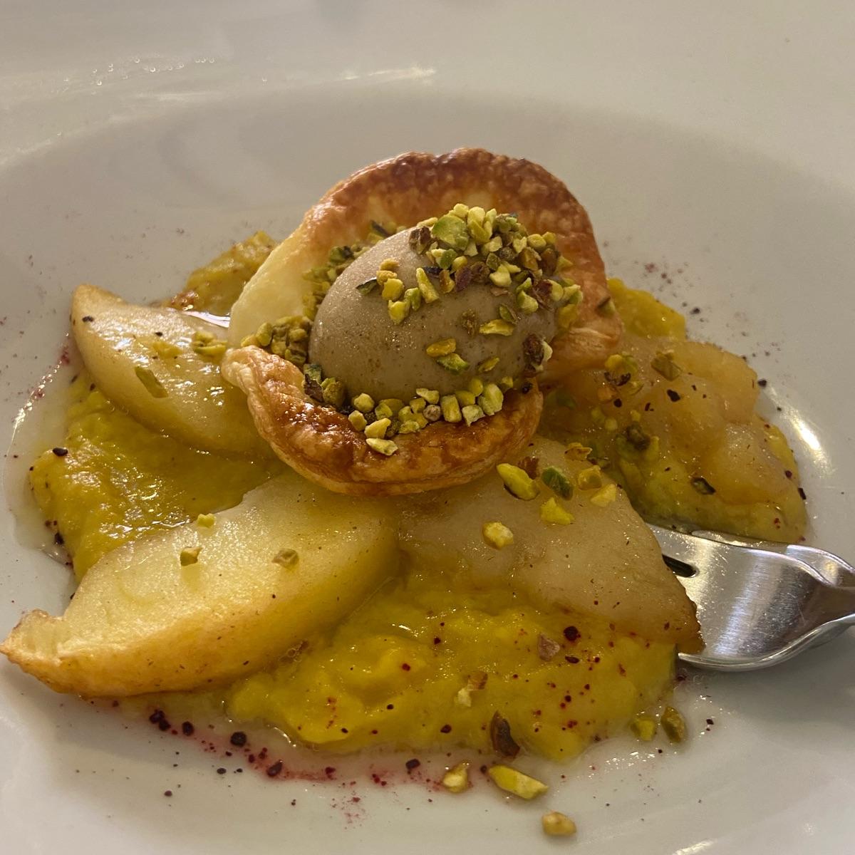 Tarta tin di mele con gelato e Crema pasticcera che però sapeva un po’ troppo di curcuma, non è il dolce migliore che ho provato #dolce #dolcevegan