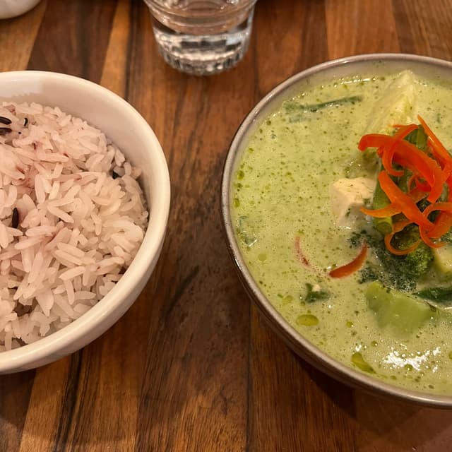 🇹🇭This #thai place is the fussy French’s go to place in Paris, who would’ve thought?! Their #greencurry is delicious and chock full of large pieces of perfectly cooked vegetables and #tofu. 🫛There’s 🥦🥬 #broccoli #cabbage #spinach #greenbeans and #peppers. 🫑The curry has some heat🌶️ of course but was decadent with the #coconut broth. 🥥 it comes with #jasminerice 🍚that had some purple rice in it too unusually. The one man running the show was incredible doing all tasks in the packed place. Best to make a reservation as it’s tiny. #paris #veganinfrance 🌱€15 The name is now Kapunka Vegan. The #veganrestaurant is all #glutenfree too. #saveveganrestaurants