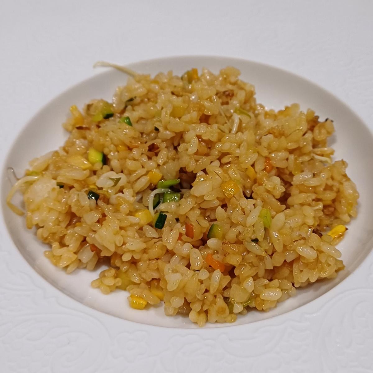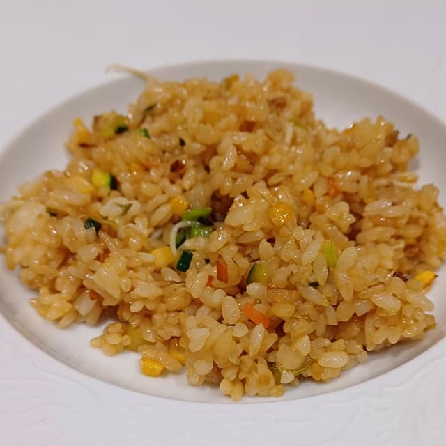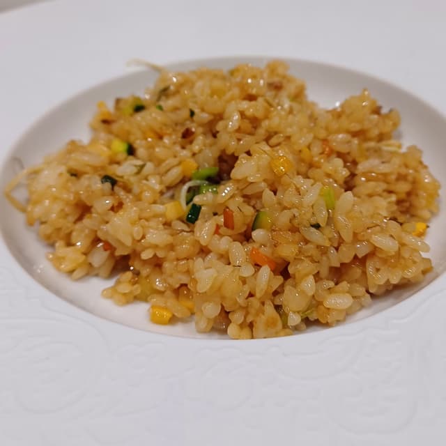 Riso ben sgranato con quella particolare consistenza del riso saltato, un pó "fritto". Ha tutti i sapori giusti anche se non é particolarmente saporito.