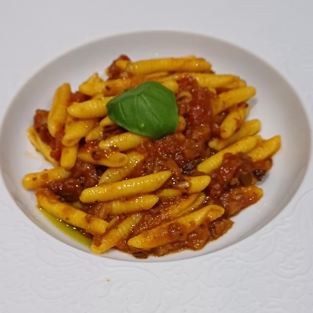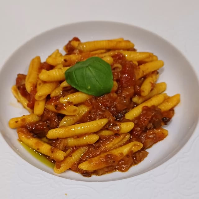 Questo piatto é squisito a cominciare dai garganelli a lavorazione artigianale, super buoni e cotti perfettamente. Il ragú di shiitake poi é eccezionale. Si sente che é stato preparato con cottura lenta e che l'olio usato é buonissimo. C'è anche la fogliolina di basilico.