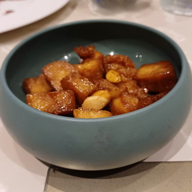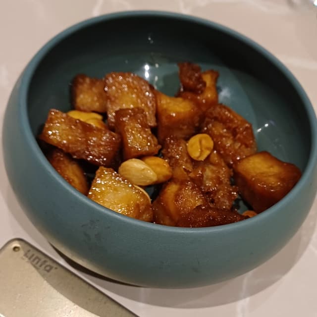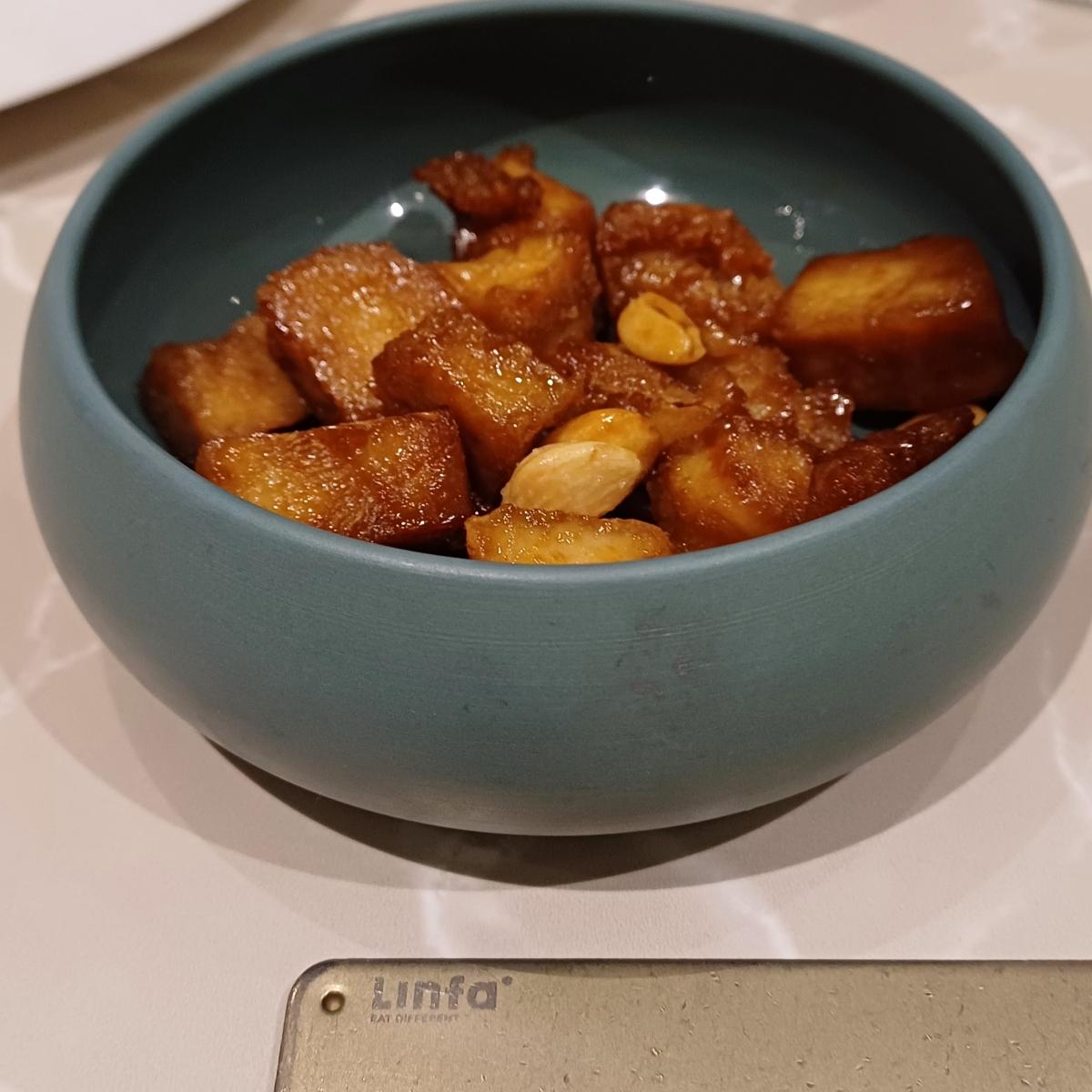 Molto credibili per forma e consistenza, e pure ben rosolati, questi bocconcini di "pollo", piatto classico della cucina cinese che chi é stato onnivoro ha sicuramente provato nella vita.
