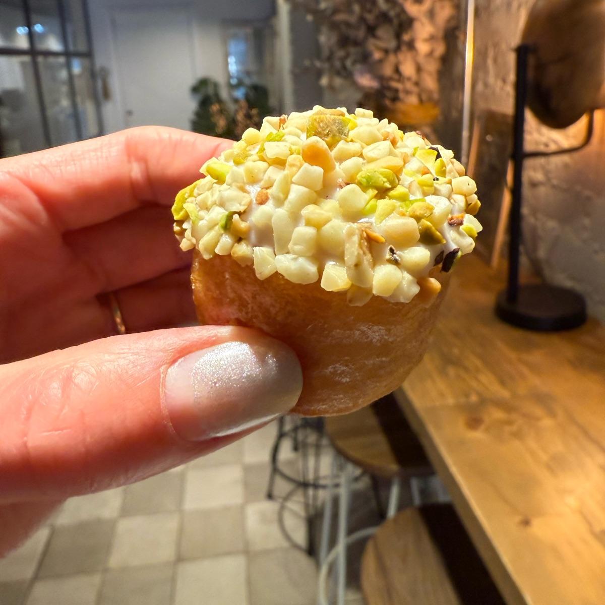 This was my favourite flavour of the four dots we tried. It wasn’t too sweet but still delicious, and the pistachios and almonds were finely chopped and had a nice crunch. #doughnut #vegandoughnut #jenandryesagavemoon