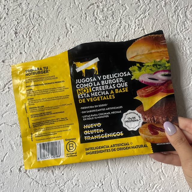 Gran sabor como la mayoría de los productos de NotCo, pero como las patties no vienen separadas en la bolsa, se mezclan entre ellas, pierden la forma y la cocción tarda más. El empaque de Beyond es mucho más acertado.