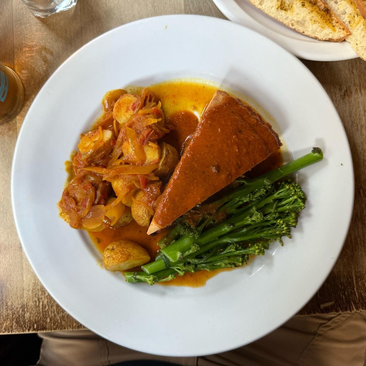 🥧 🤤 This was incredible - a roasted balti vegetable pie slice with Bombay potatoes, tender stem broccoli and balti curry sauce. This was my husbands dish but we ended up splitting this and the burger because they both tasted so good. This was so tasty, great flavours, huge portion - I’d order this again if we went back.