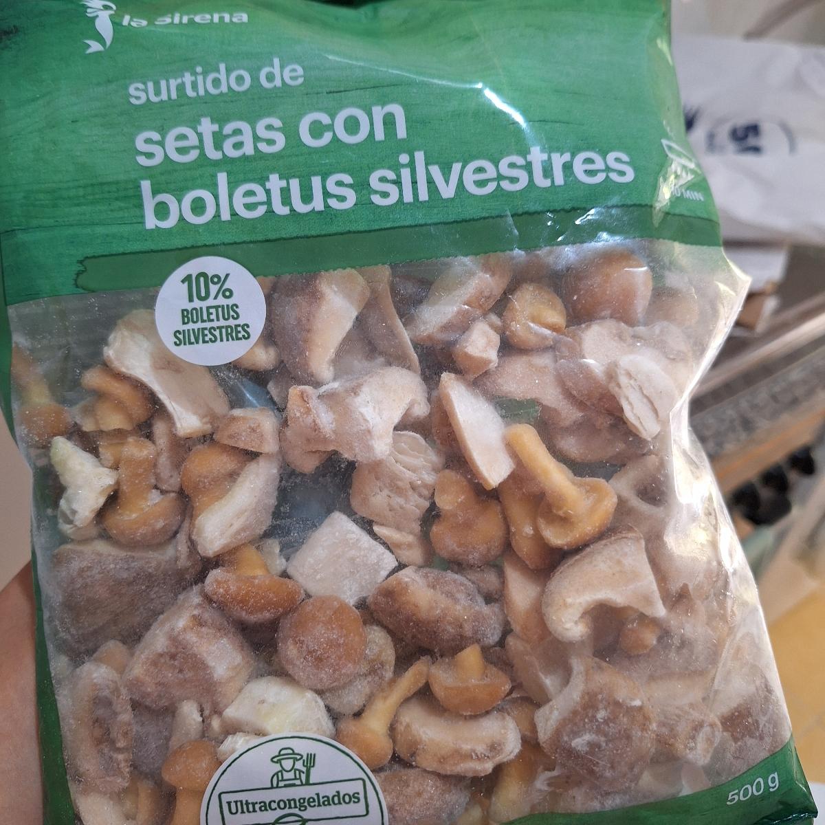 Bolsa de 500 gramos de setas y boletus silvestres ultracongeladas, ideal para cocinar directamente guisos y salsas.