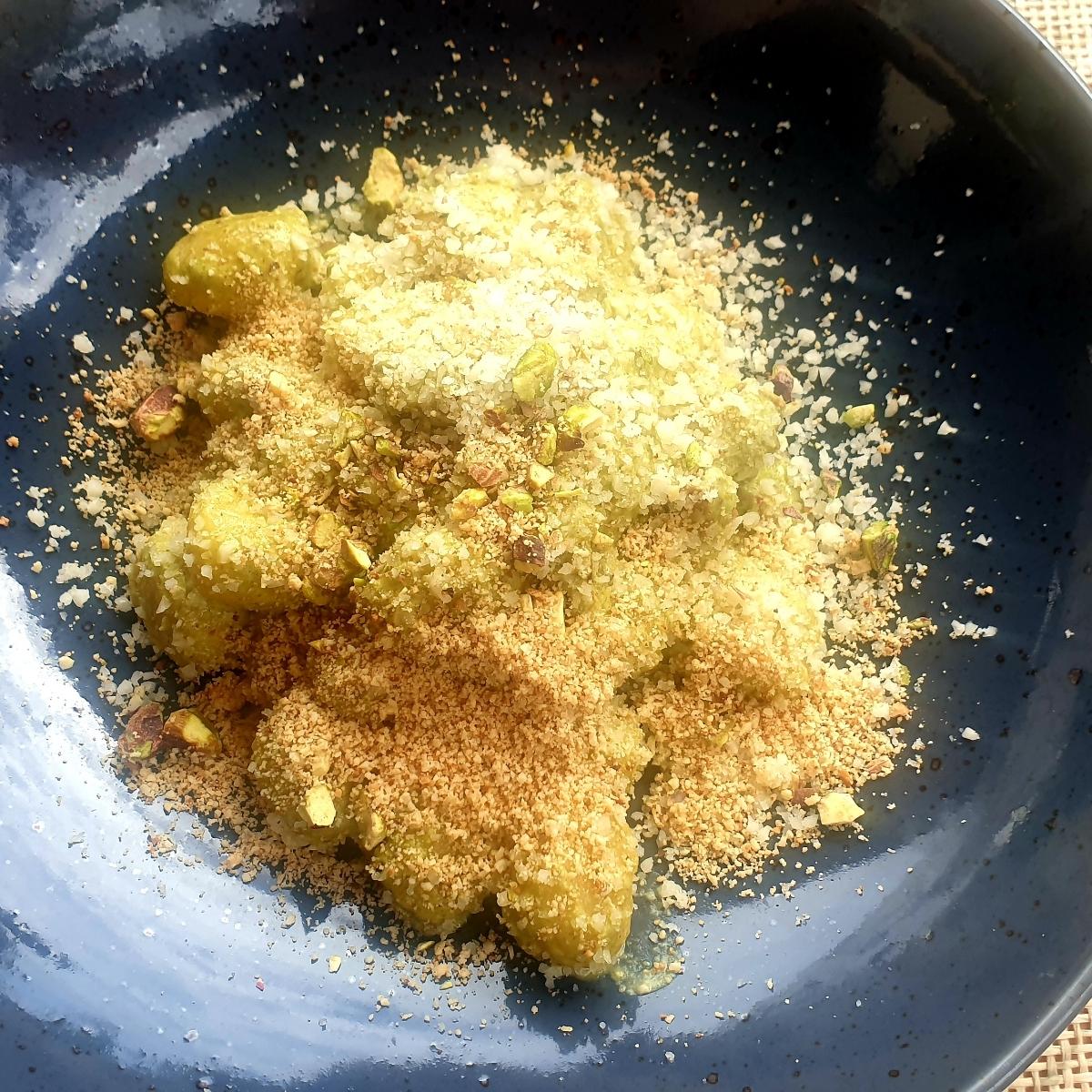 The gnocchi was generously covered in creamy pistachio and spinach pesto (felt inspired to try recreate this at home). Then the generous helping of a sun-dried tomato and vegan cheese sprinkle.