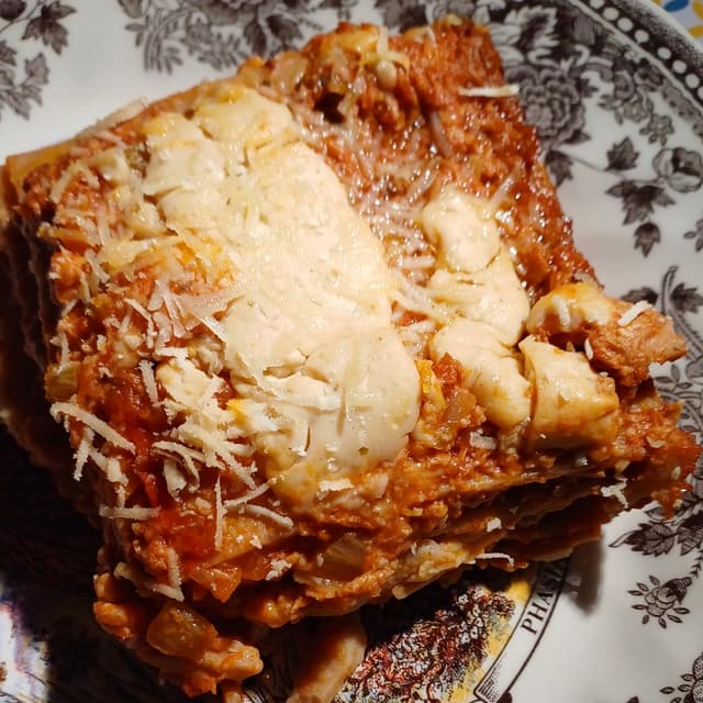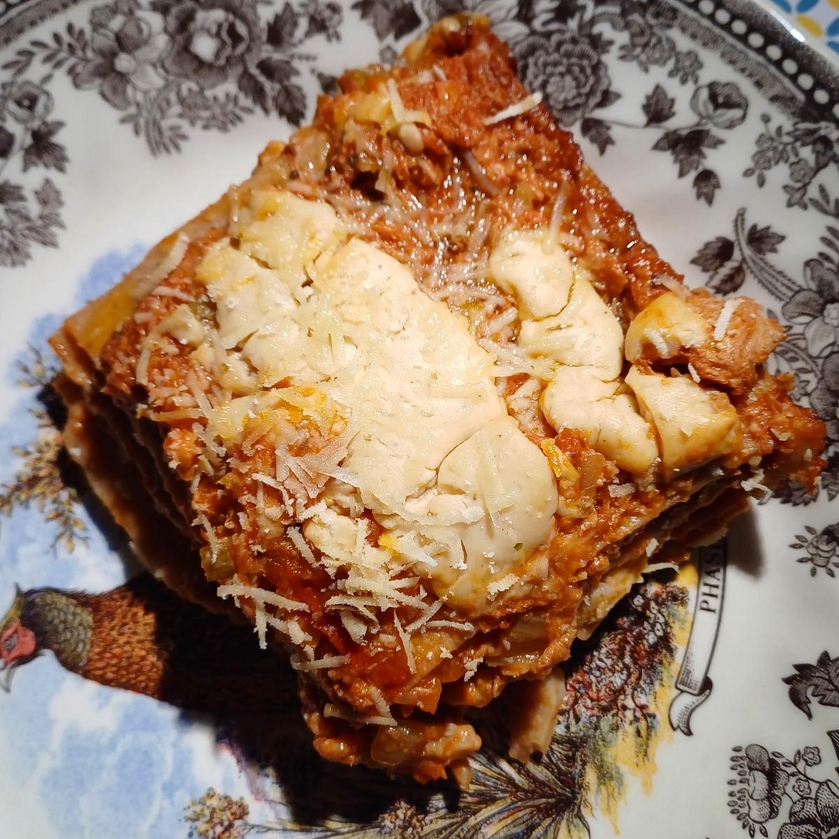 Queste lasagne non si presentano benissimo ma sono saporite, morbide, con ragú di soia.