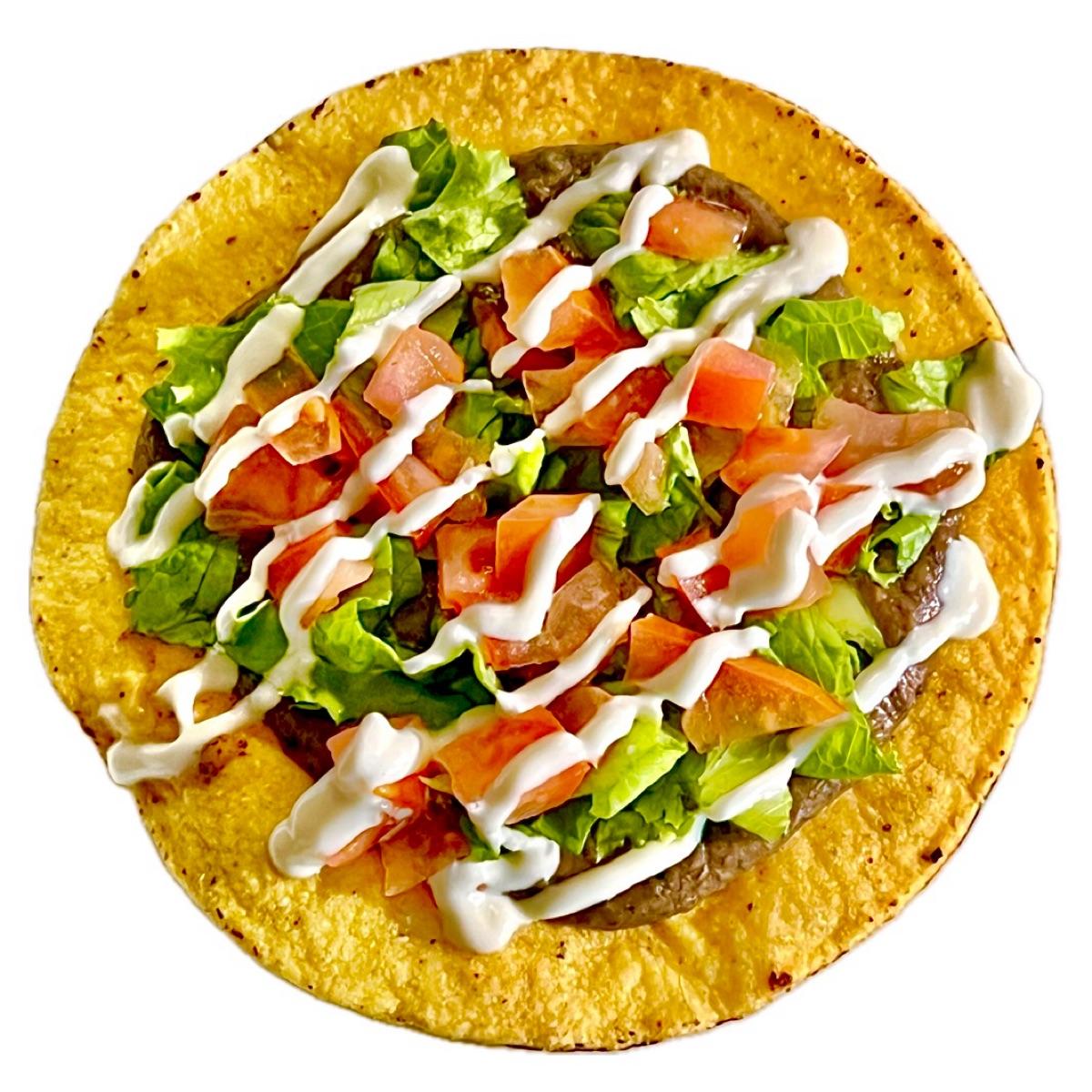 This consisted of creamy, seasoned refried black beans, chopped lettuce, chopped tomatoes, and crema on a corn shell. It was delicious, nourishing, and fun, and made us feel light as a feather.