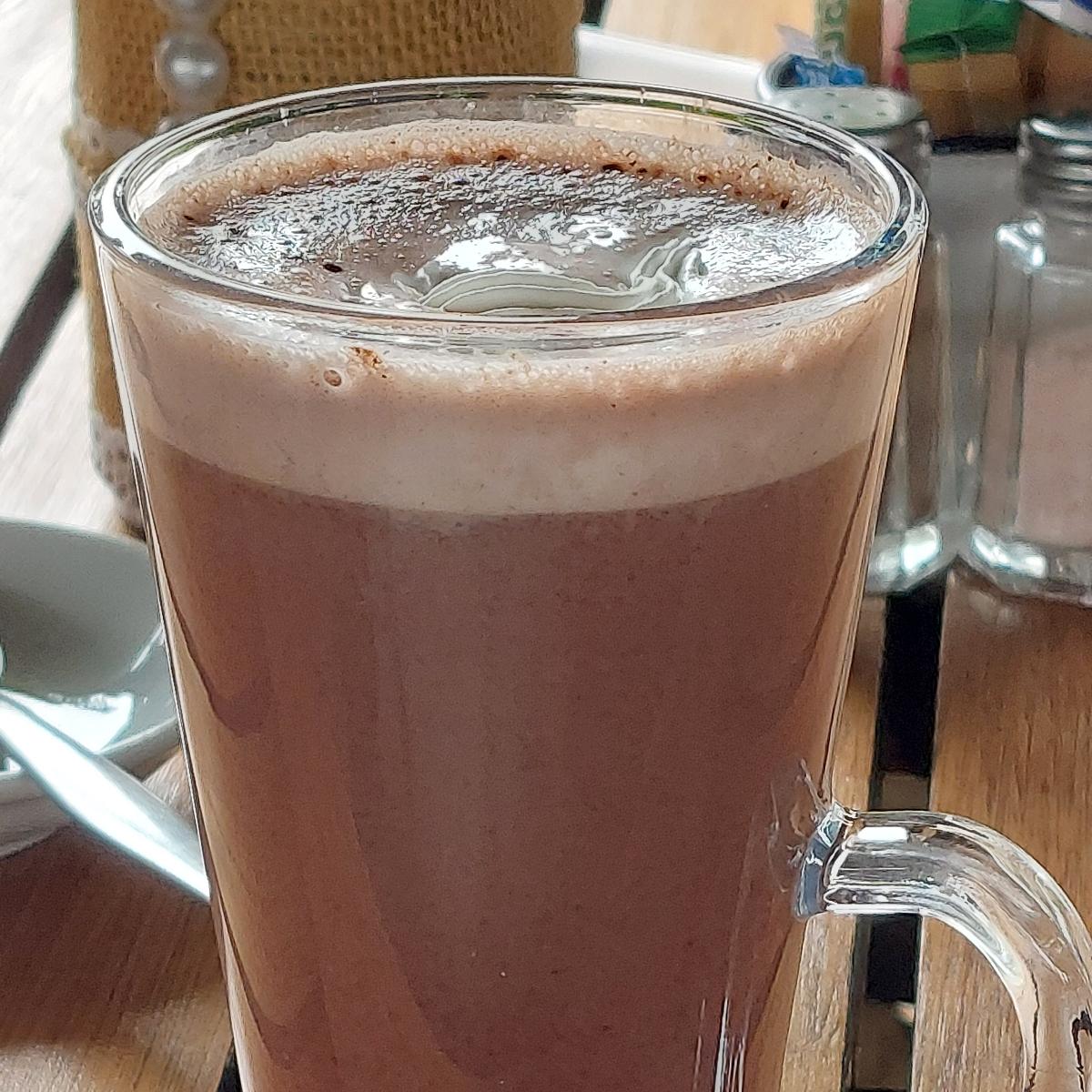 Delicious hot chocolate that is topped with their whipped cream! Perfect for a cold morning. Love this restaurant.